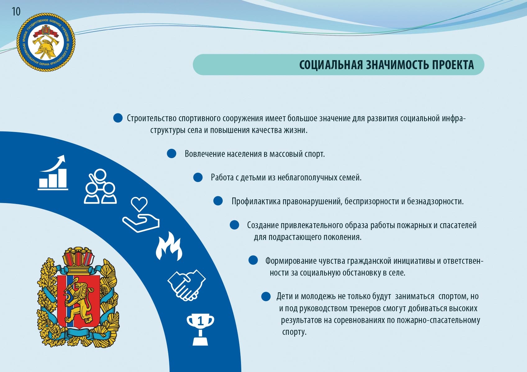 Дизайн был разработан с учетом целевой аудитории – региональных чиновников и представителей министерств. Особое внимание уделялось социальным аспектам: охват до 70 тыс. человек, развитие пожарно-спасательного спорта, патриотическое воспитание и профилактика правонарушений. Визуальная составляющая и лаконичная подача информации в выгодном свете показали уникальность и значимость проекта.